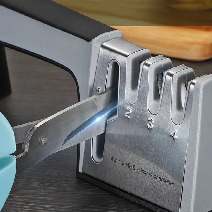 Blunt degree of knife 3: If your knife is very blunt (it is not easy to cut fruits and vegetables), please ask the man to grind 10 rounds with No. 2 hole first (it can grind steel chips/approximate to a cutting edge), then grind 10 rounds with No. 3 hole, and finally grind 5 rounds with No. 4 hole